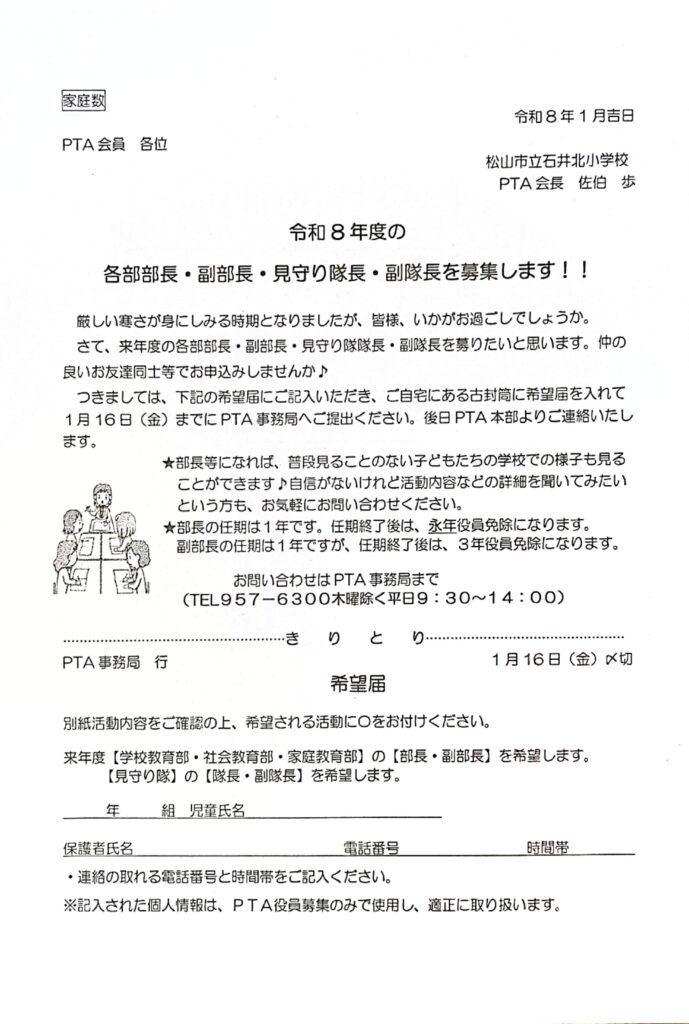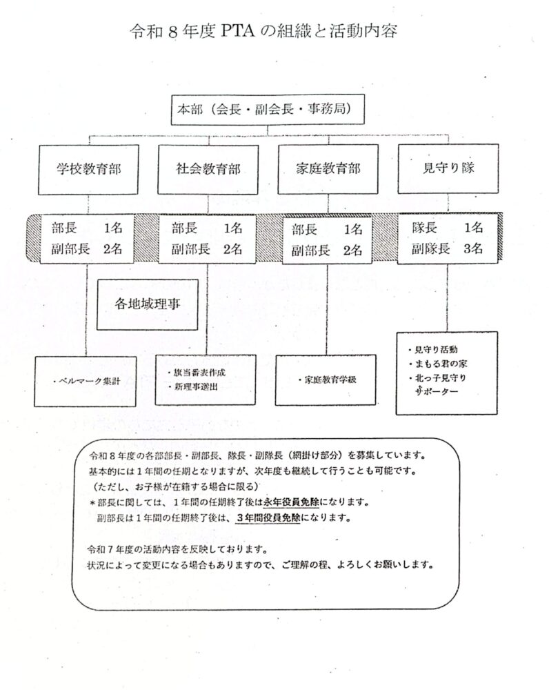 令和8年度の各部長・副部長・見守り隊長・副隊長を募集します!!